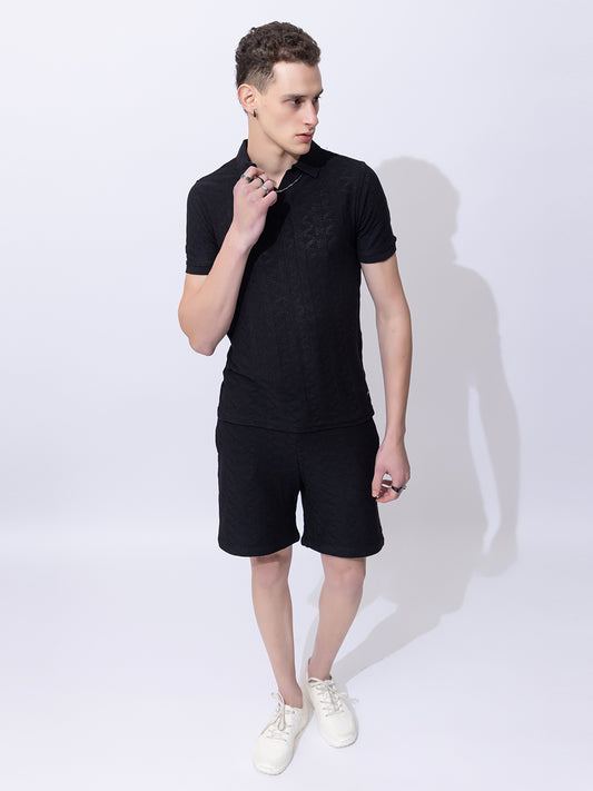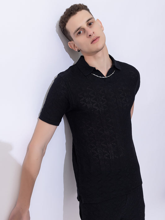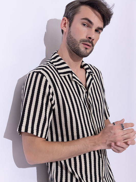 508 Crochet Resort Co-Ord Set I Shirt + Shorts I Black Stripes