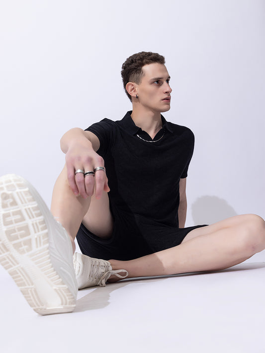 508 Crochet Resort Co-Ord Set I Shirt + Shorts I Black Stripes