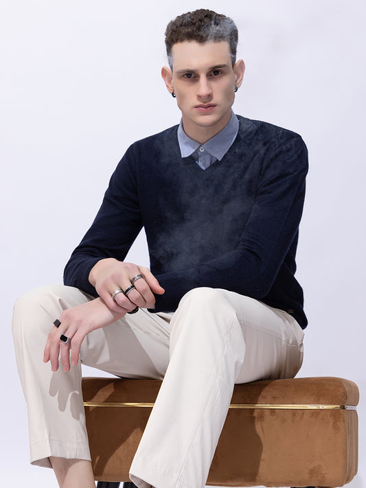 215 Solid Pullover I Wool I Woolmark Certified I Navy