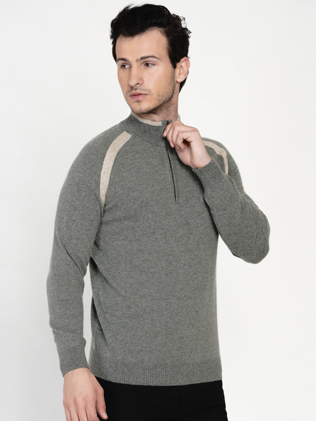 226 Half Zip Pullover I Woolmark Certified I Olive Melange