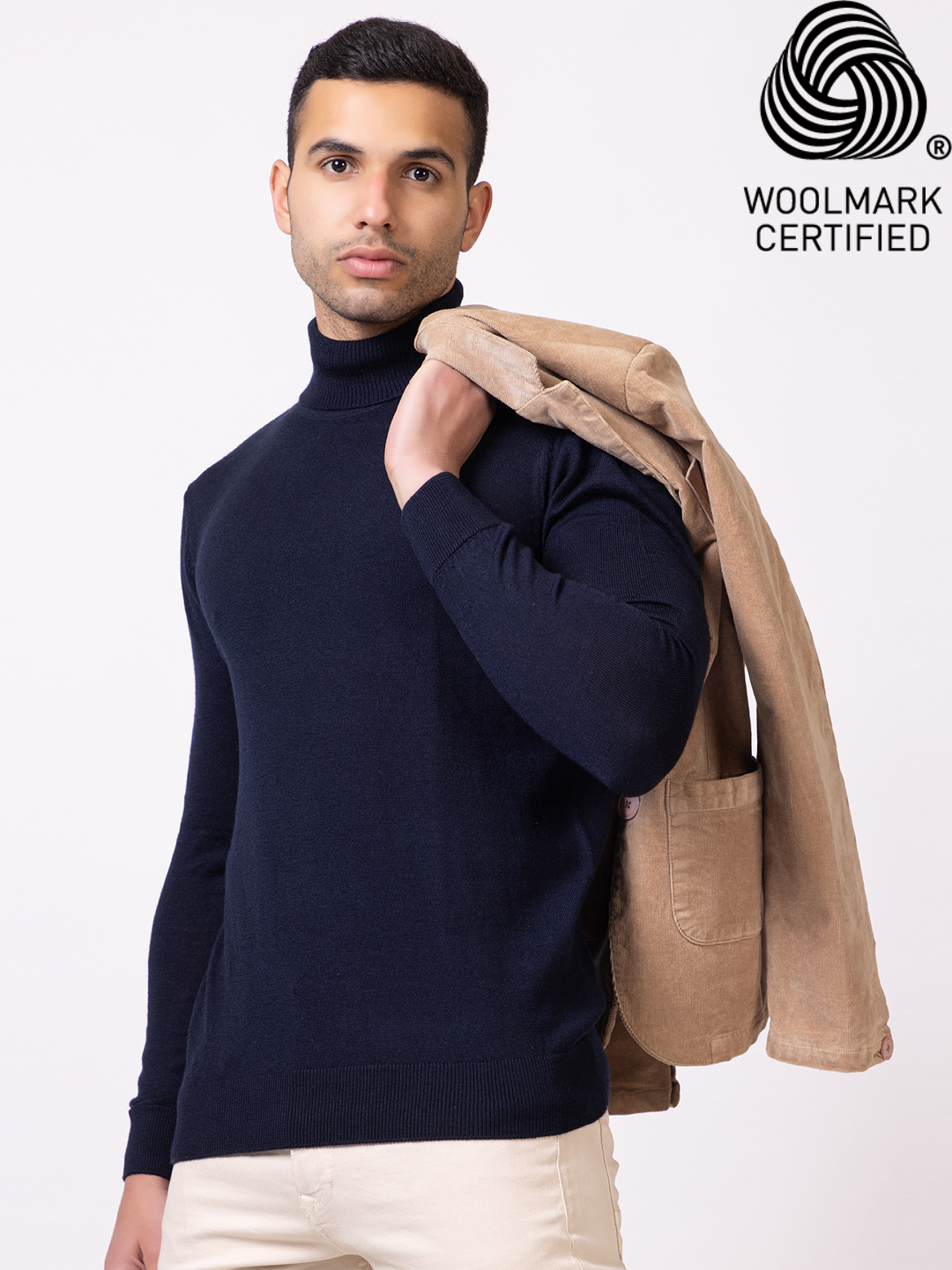 230 Turtle Neck Pullover I Wool I Woolmark Certified I Navy