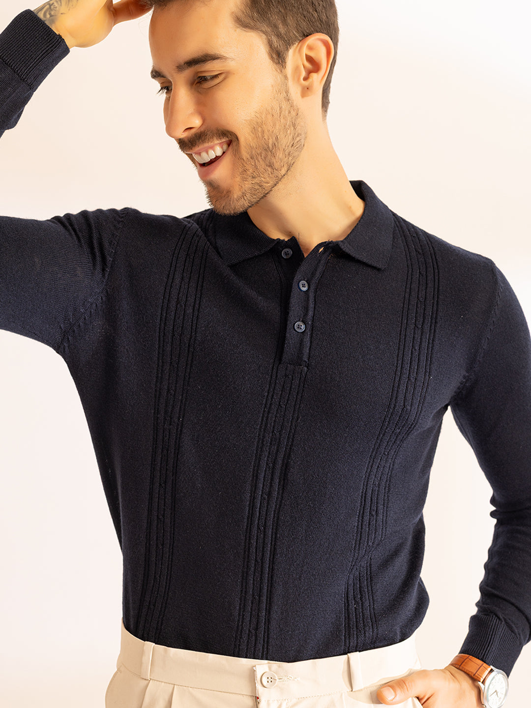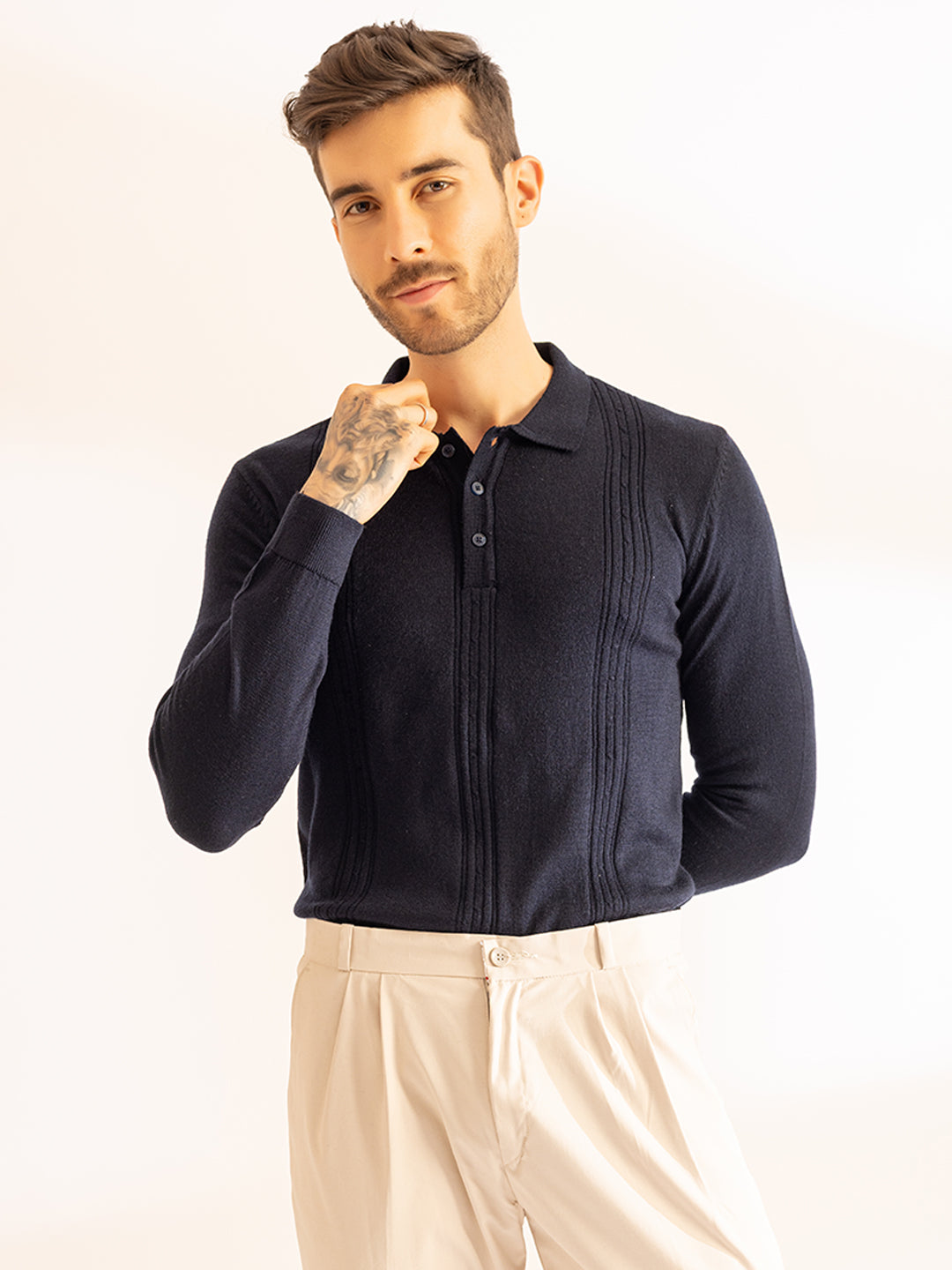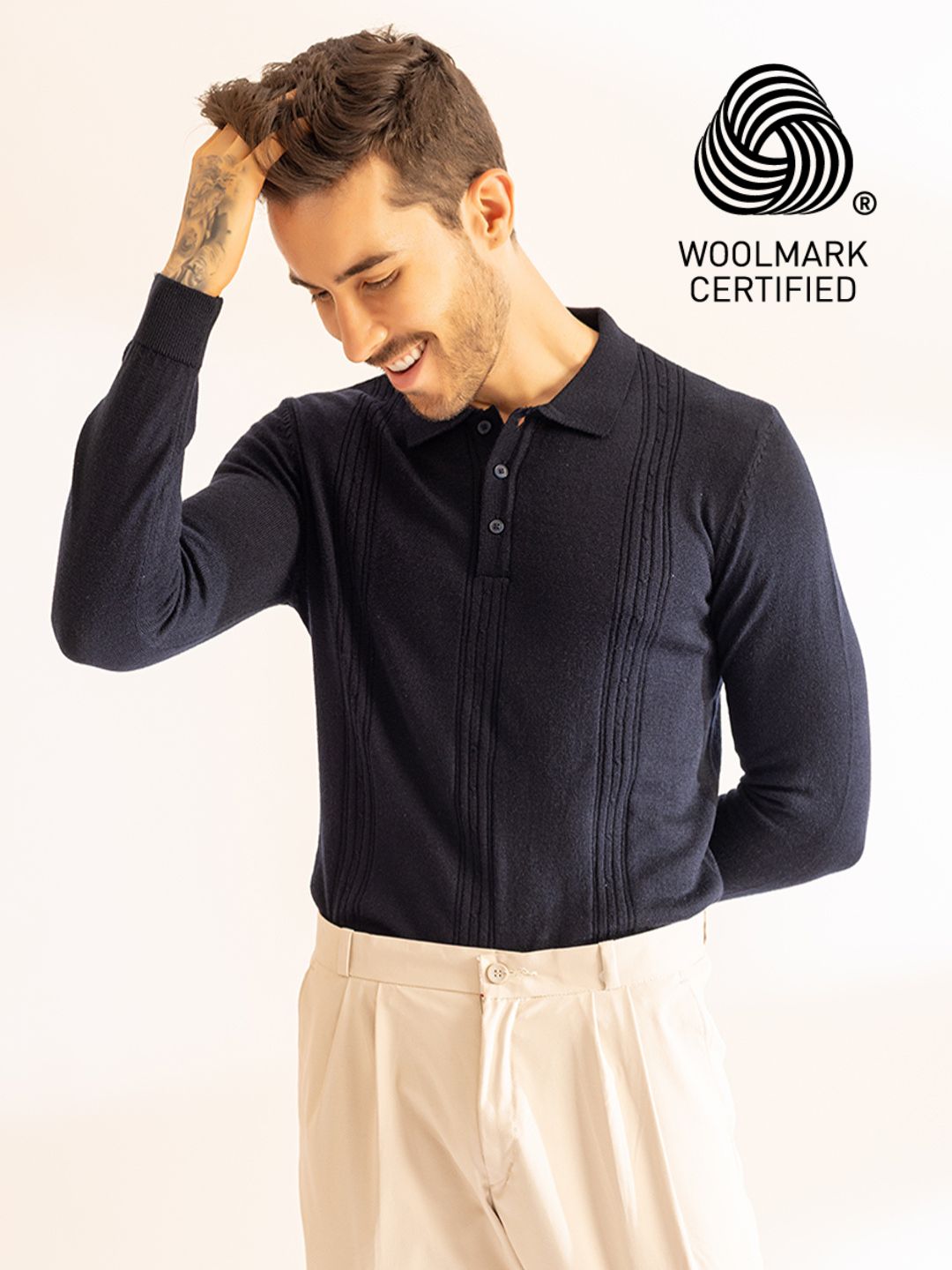 Cable Knit Woollen Polo I Woolmark Certified I French Navy