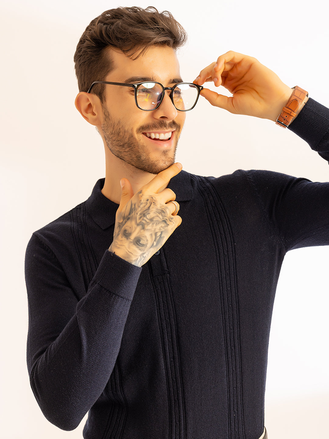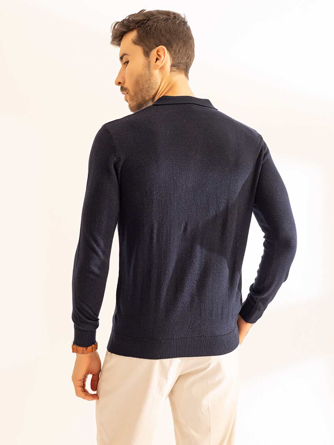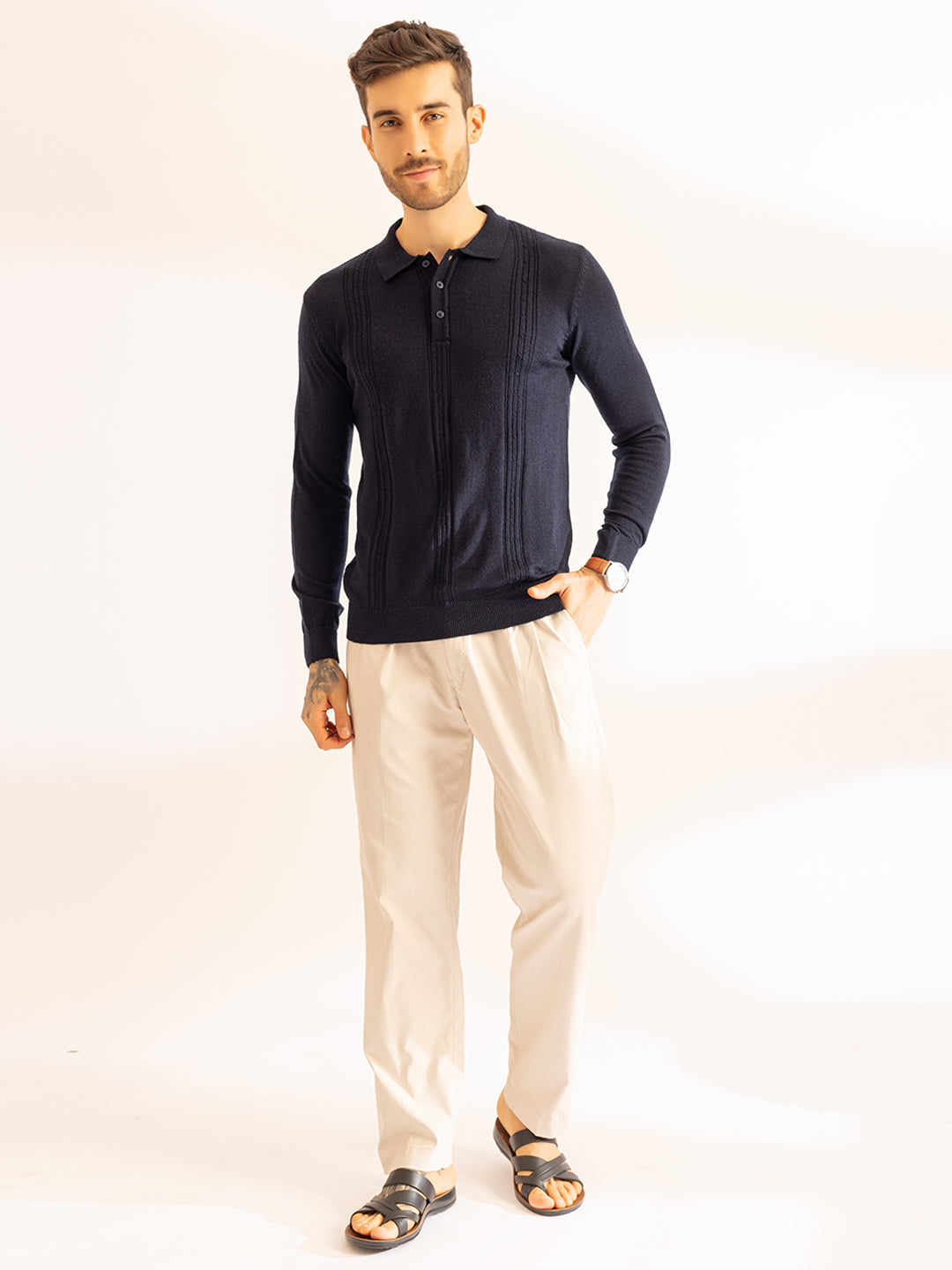 Cable Knit Woollen Polo I Woolmark Certified I French Navy