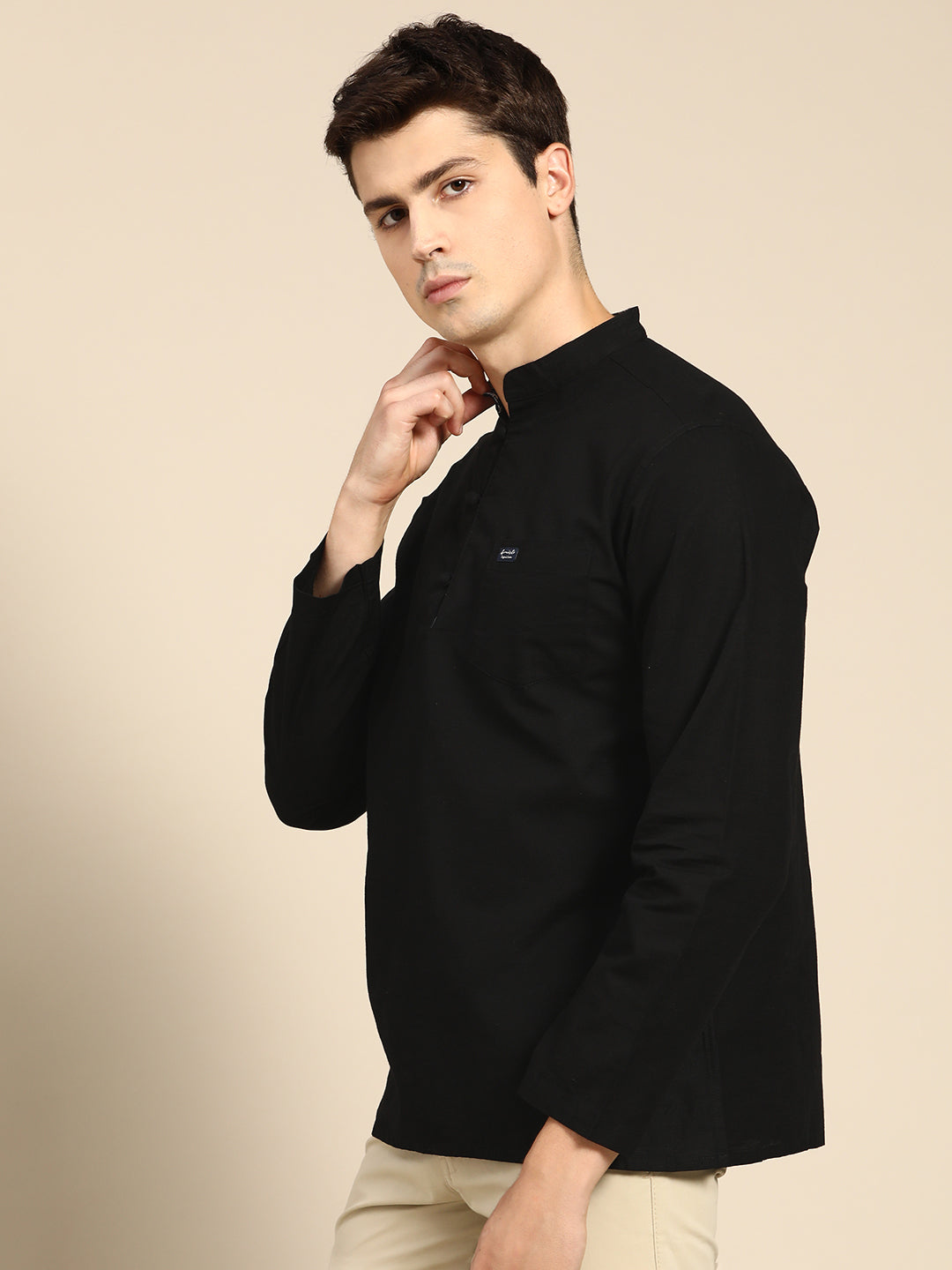 501 Men's Linen Smart Kurta Shirt I Black