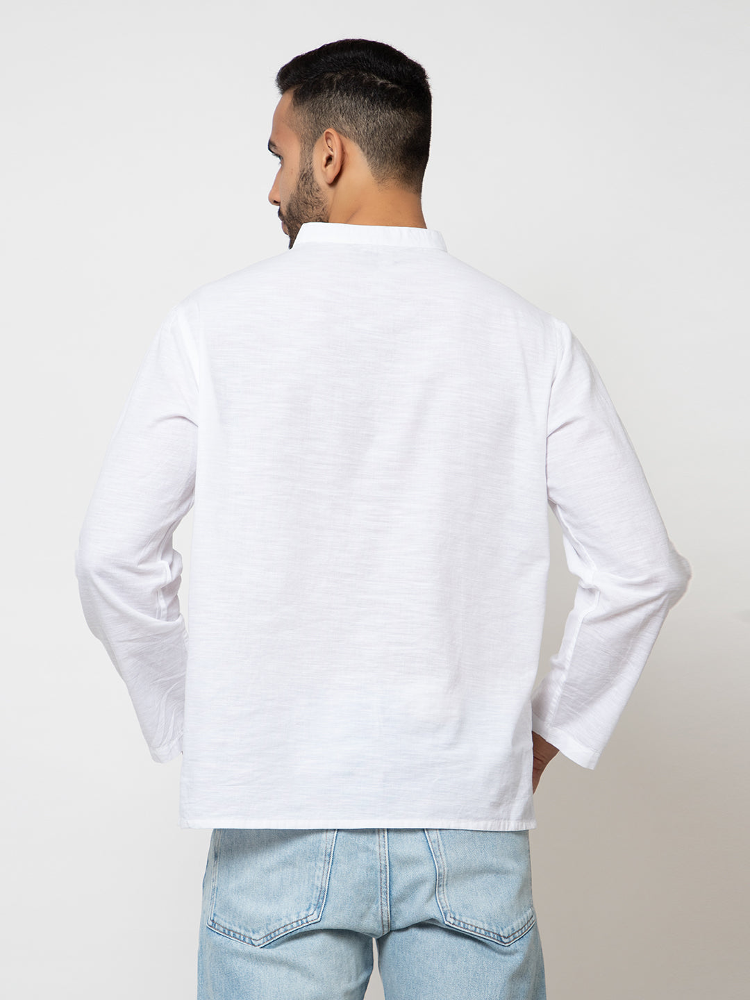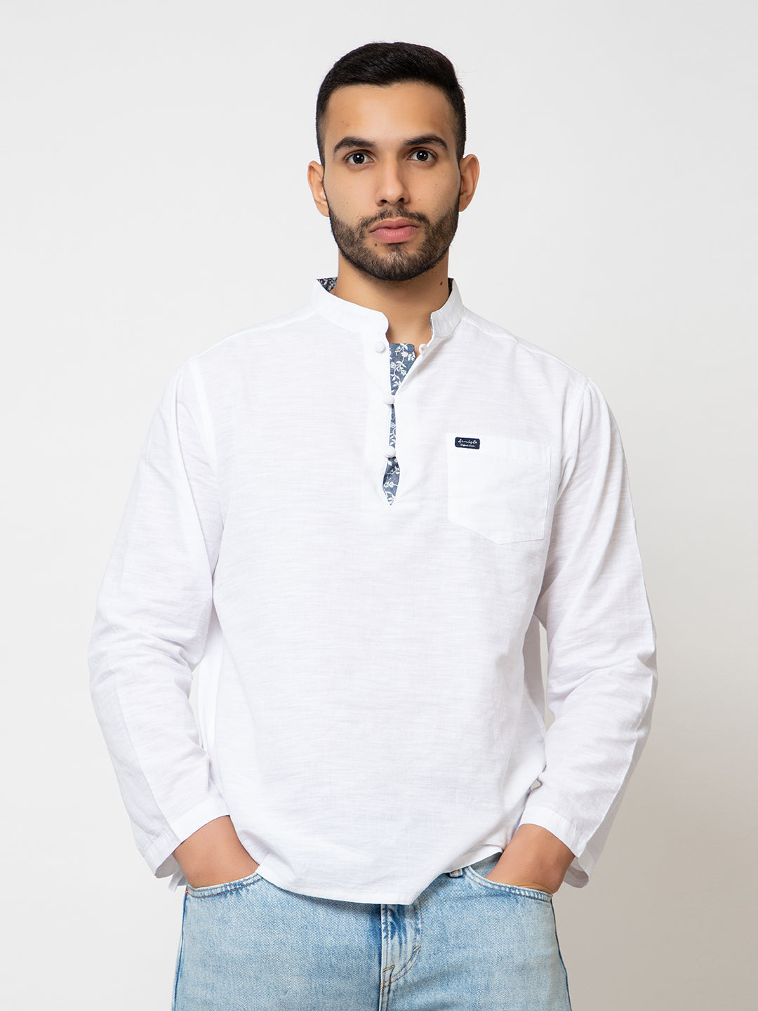 501 Men's Linen Smart Kurta Shirt I Full Sleeves I White