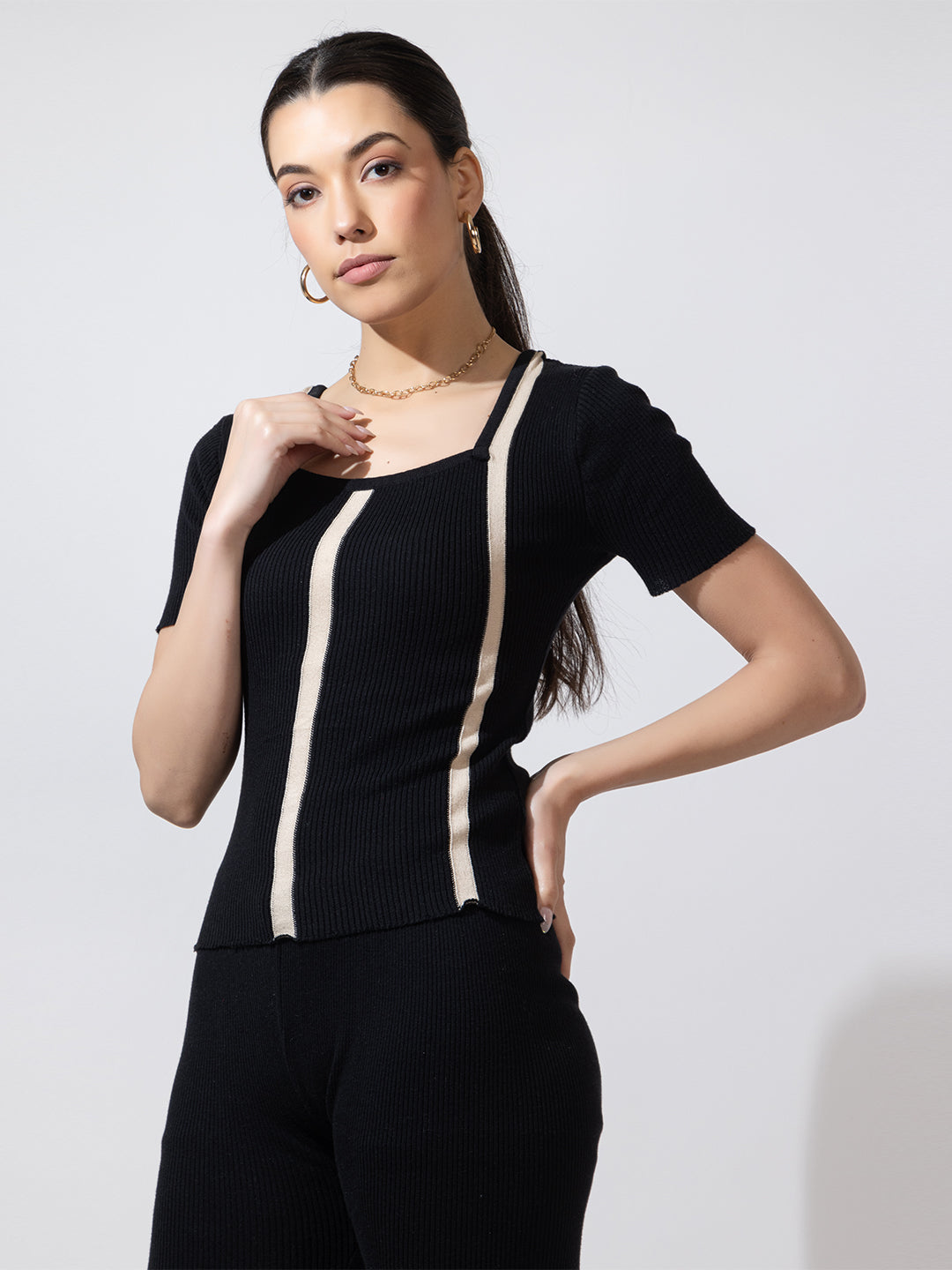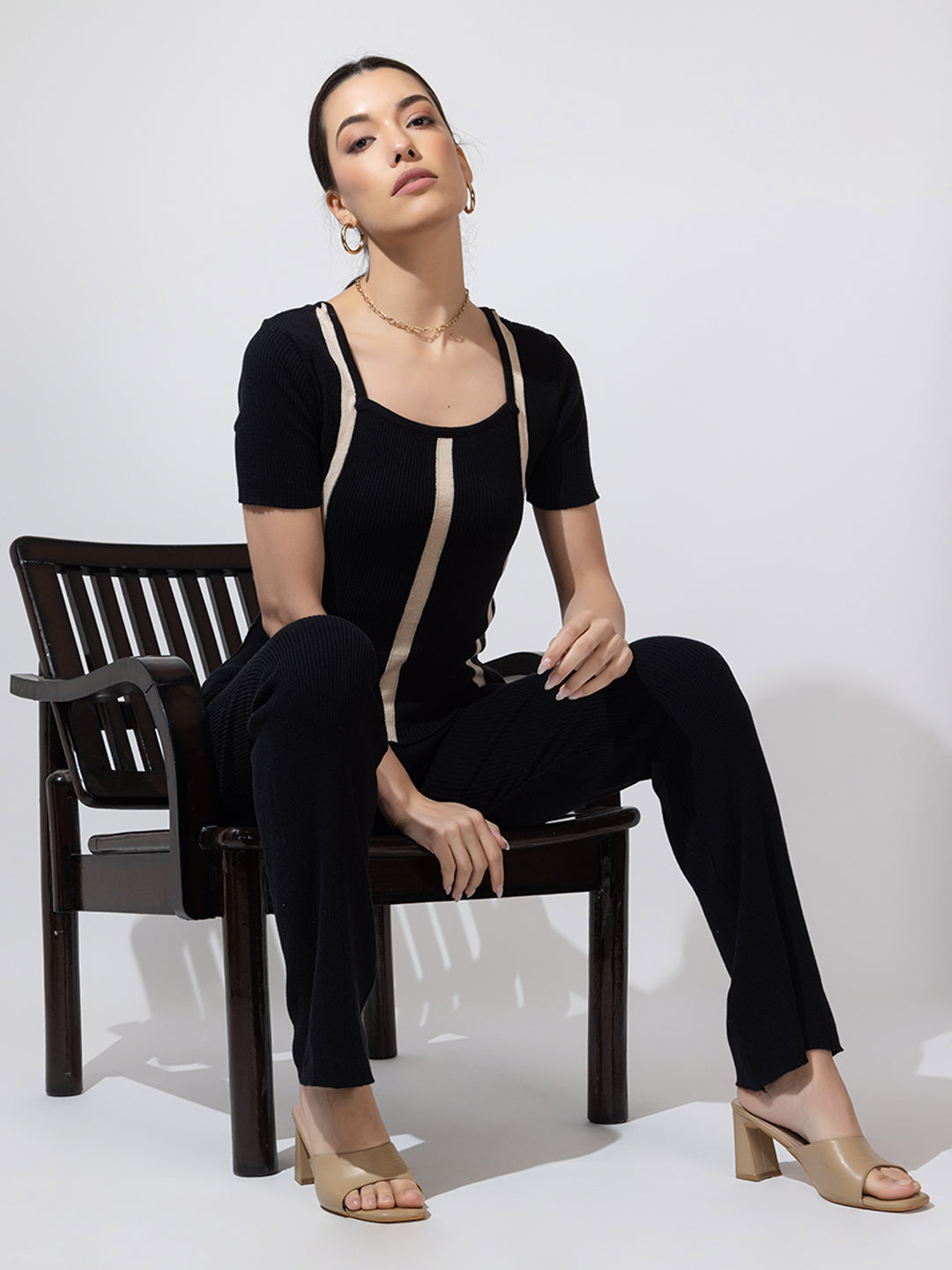 805 Knit Co-Ord Set I Black I Top + Bottom