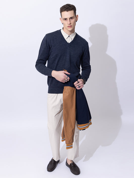 215 Solid Pullover I Wool I Woolmark Certified I BlueMelange