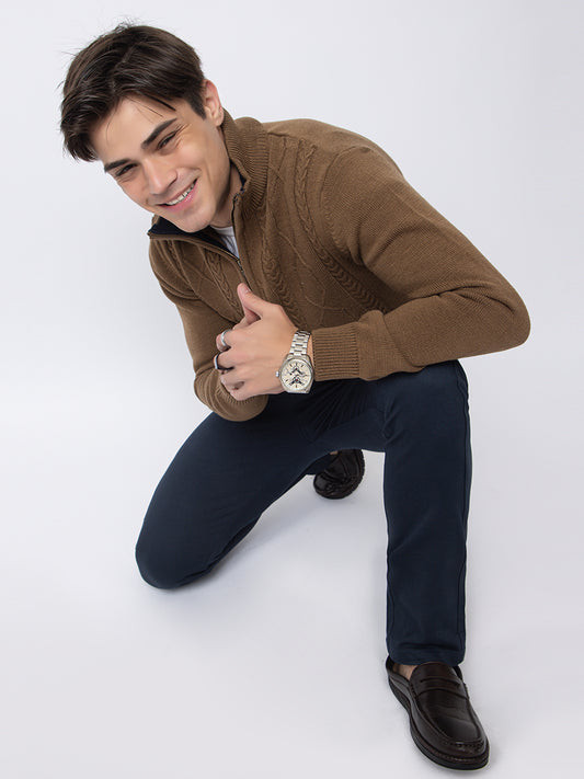 Cable Knit Woollen Polo I Woolmark Certified I French Navy