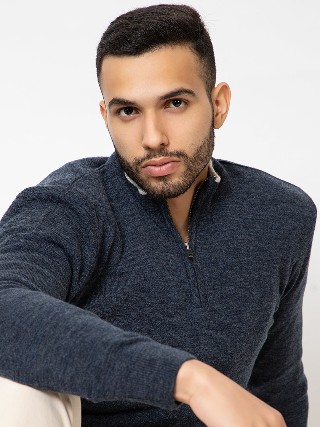 223 Half Zip Pullover I Woolmark Certified I Blue Melange