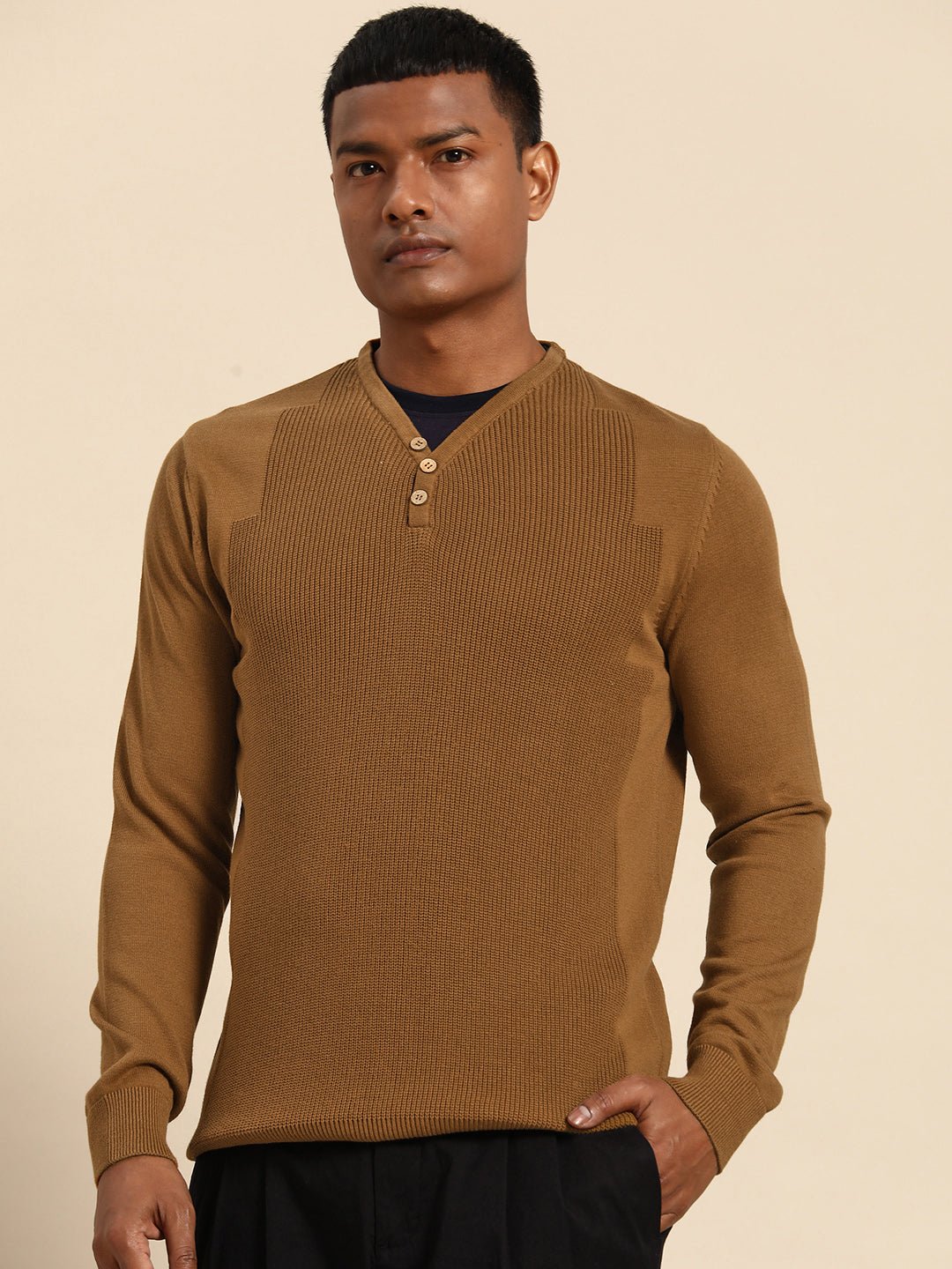 232 Textured Pullover I Mock Neck I Chocolate Brown