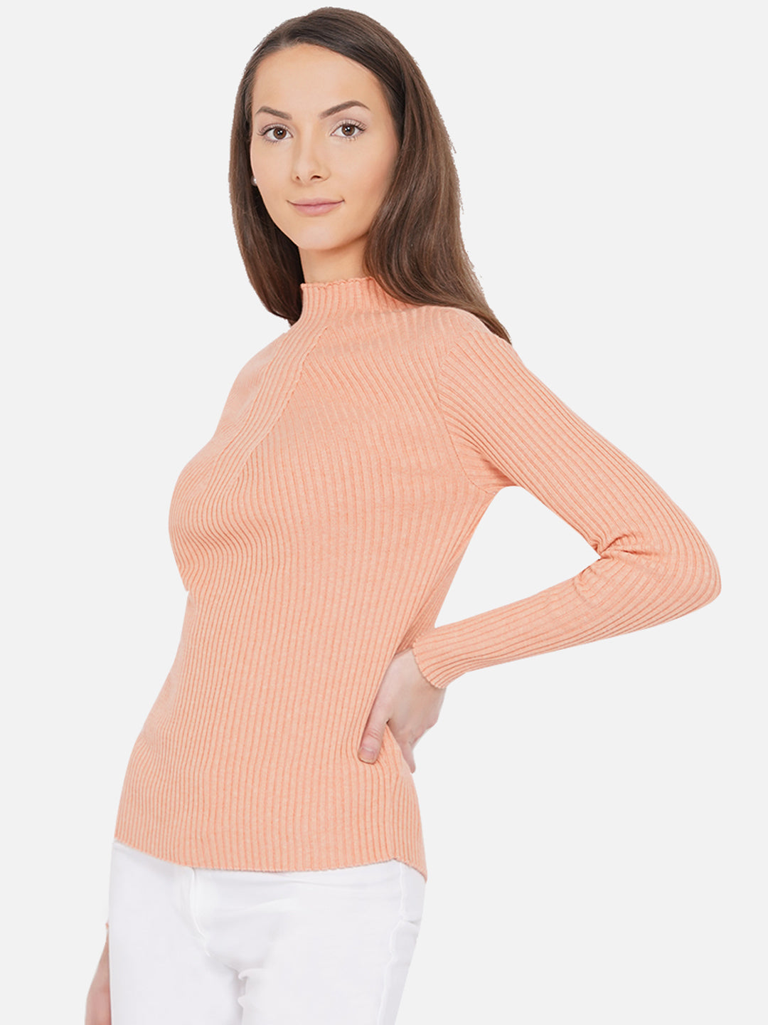 309 Ribbed High Neck Pullover I Juicy Peach