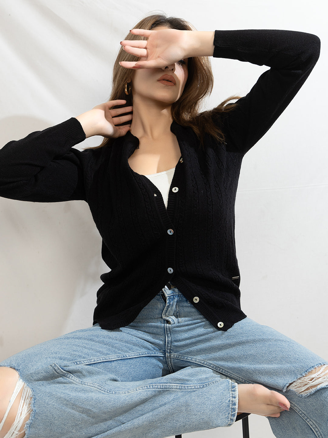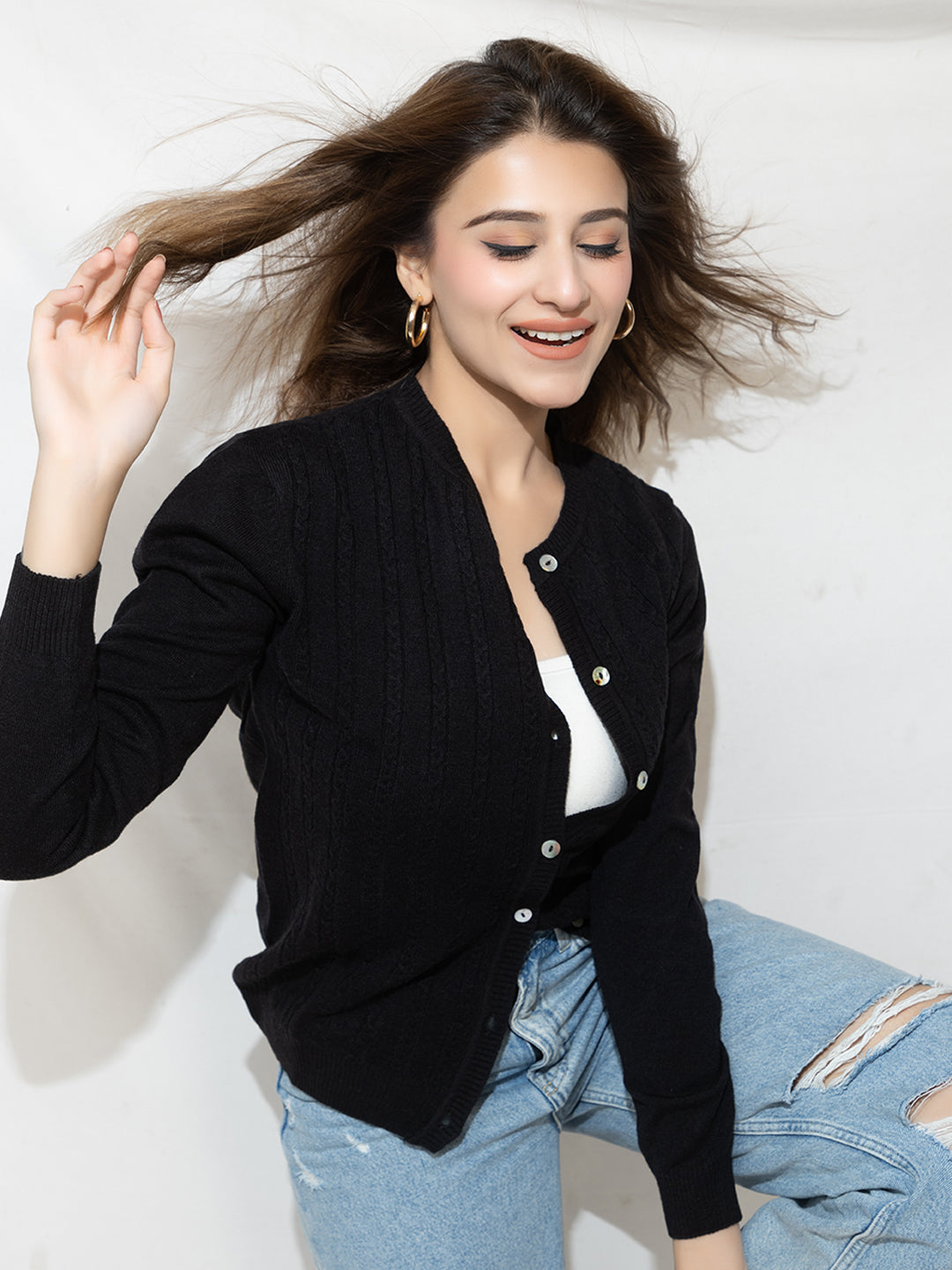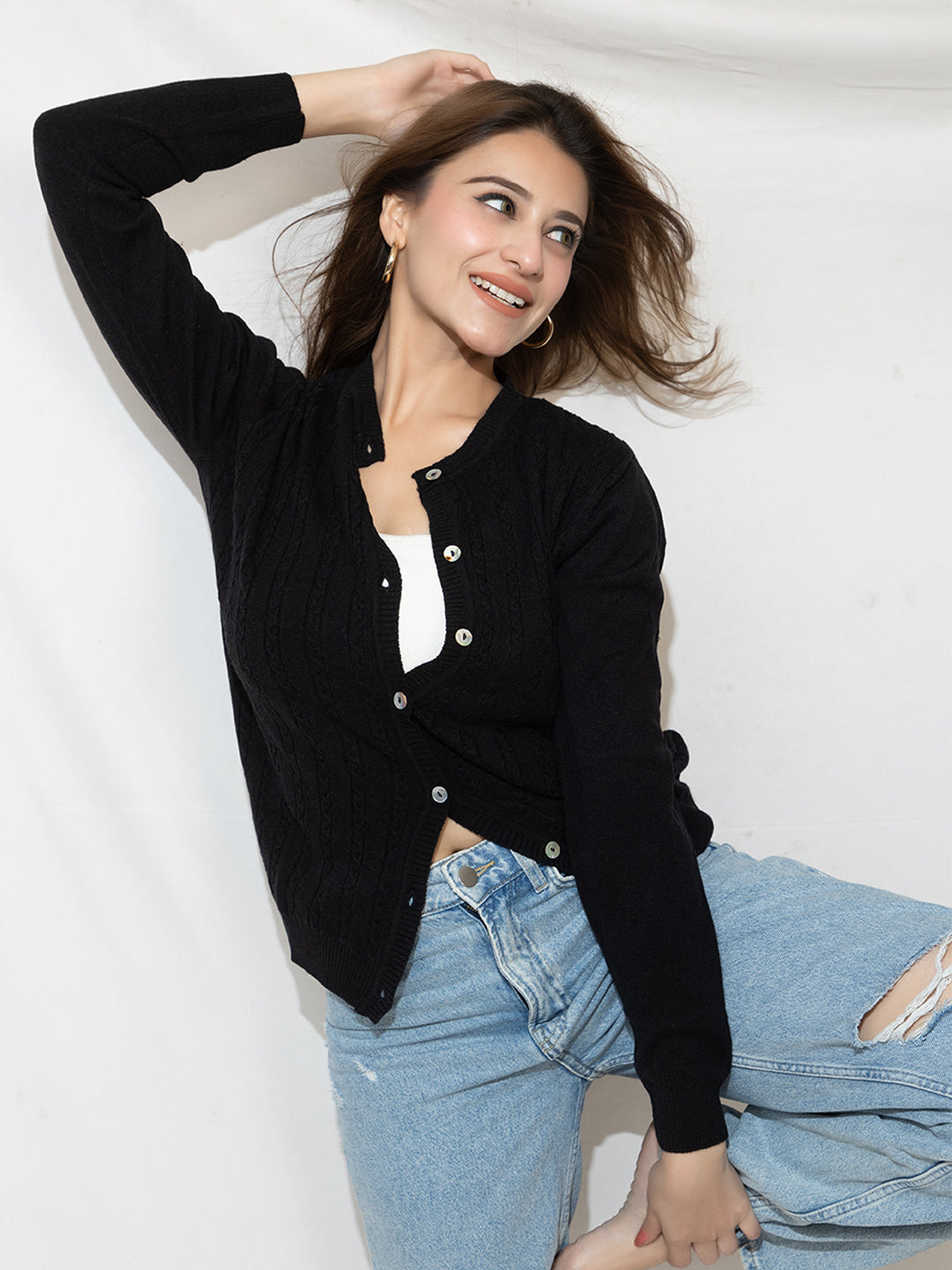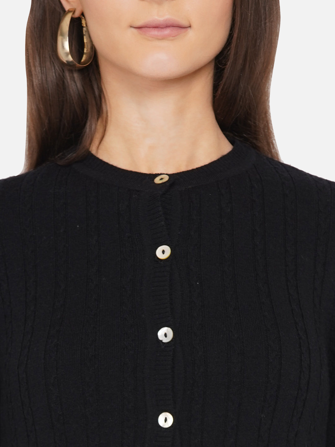 318 Wool Cable Knit Cardigan I Black