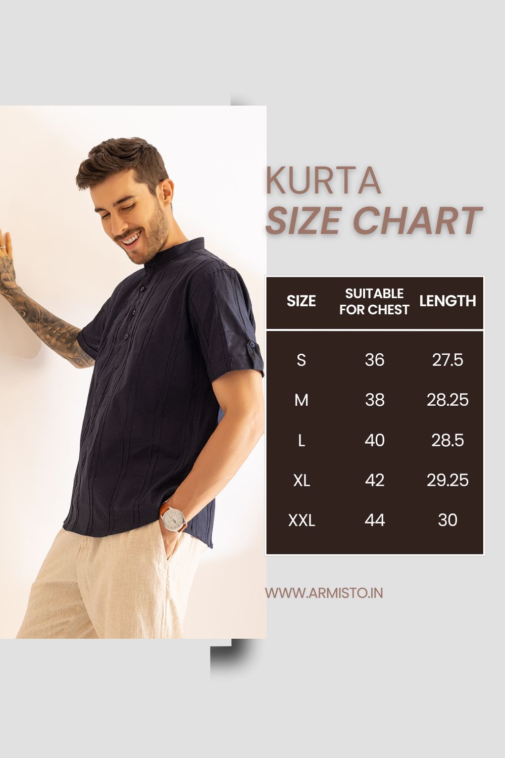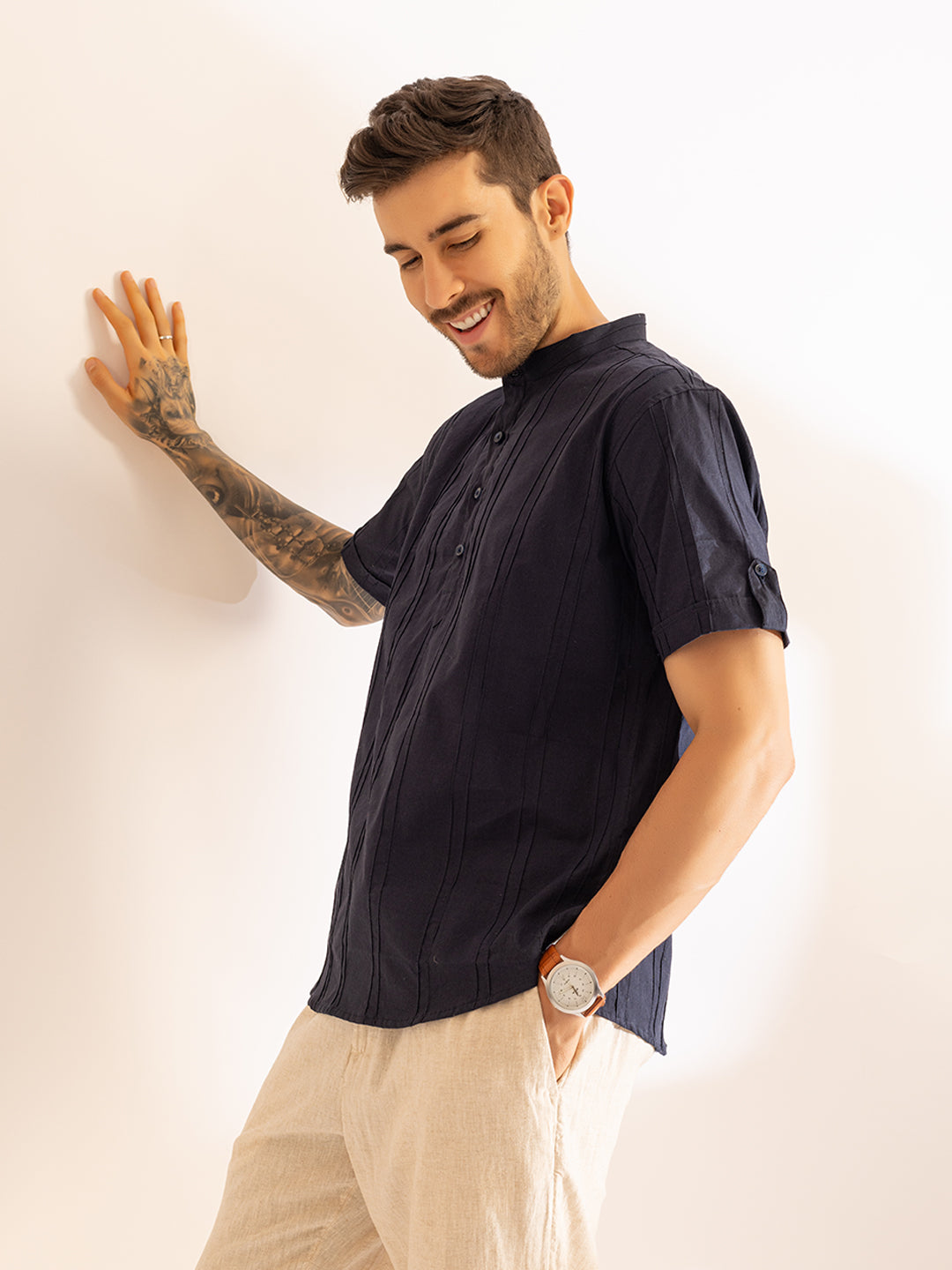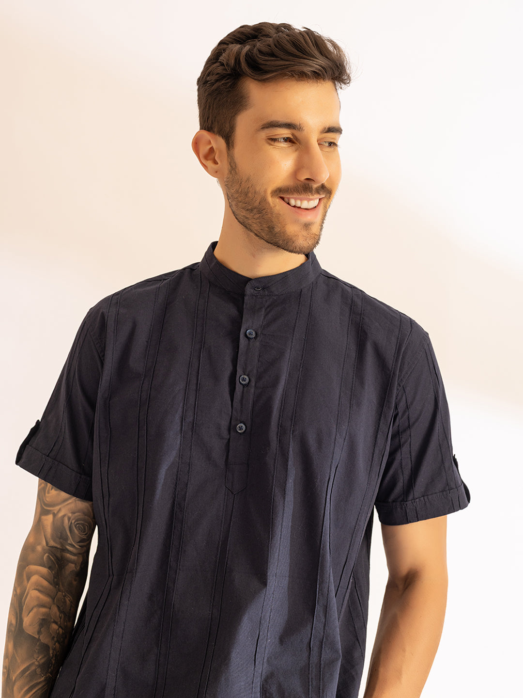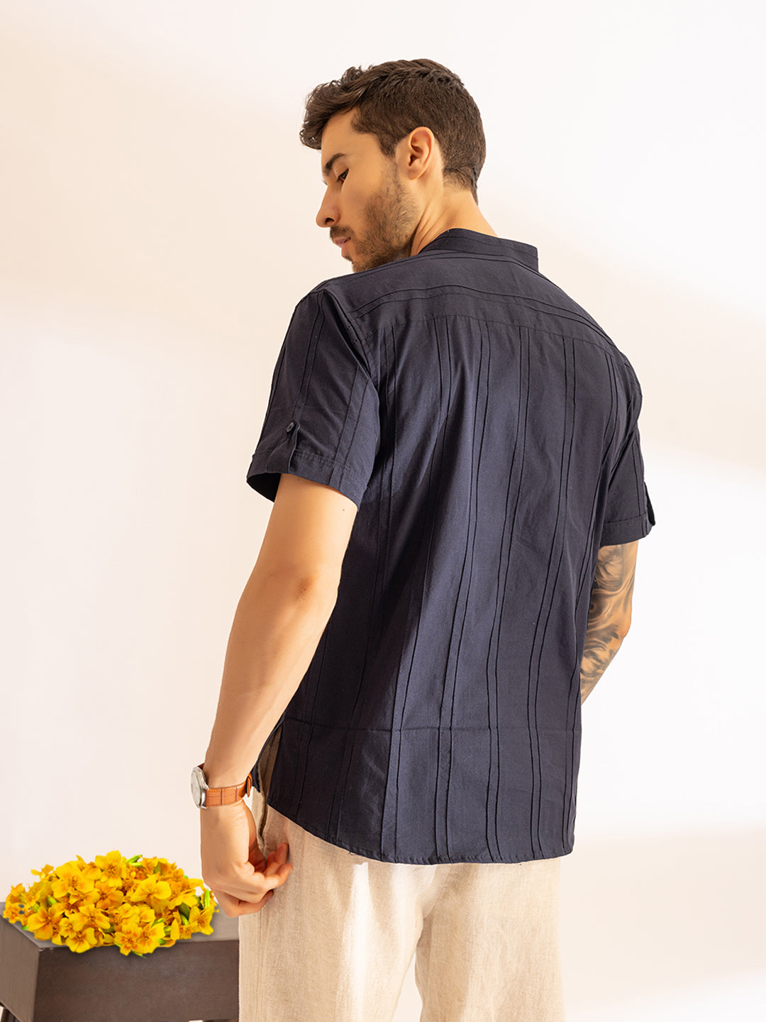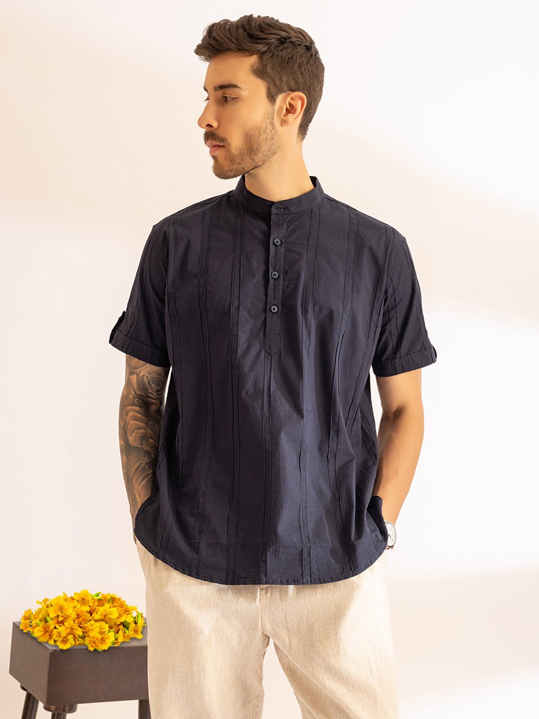 Pinstriped Festive Kurta Shirt I Half Sleeves I French Navy