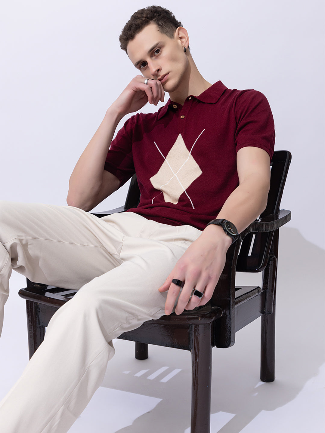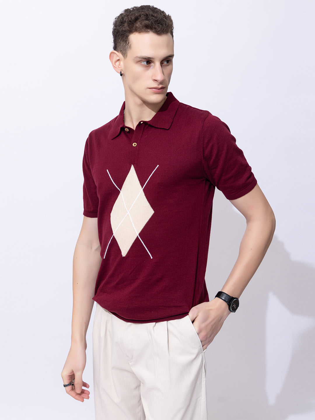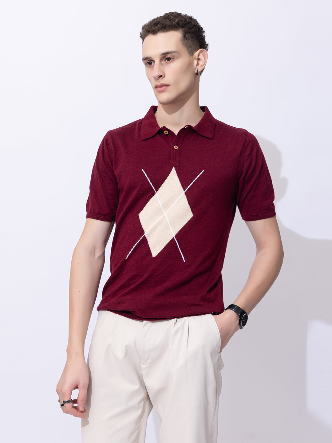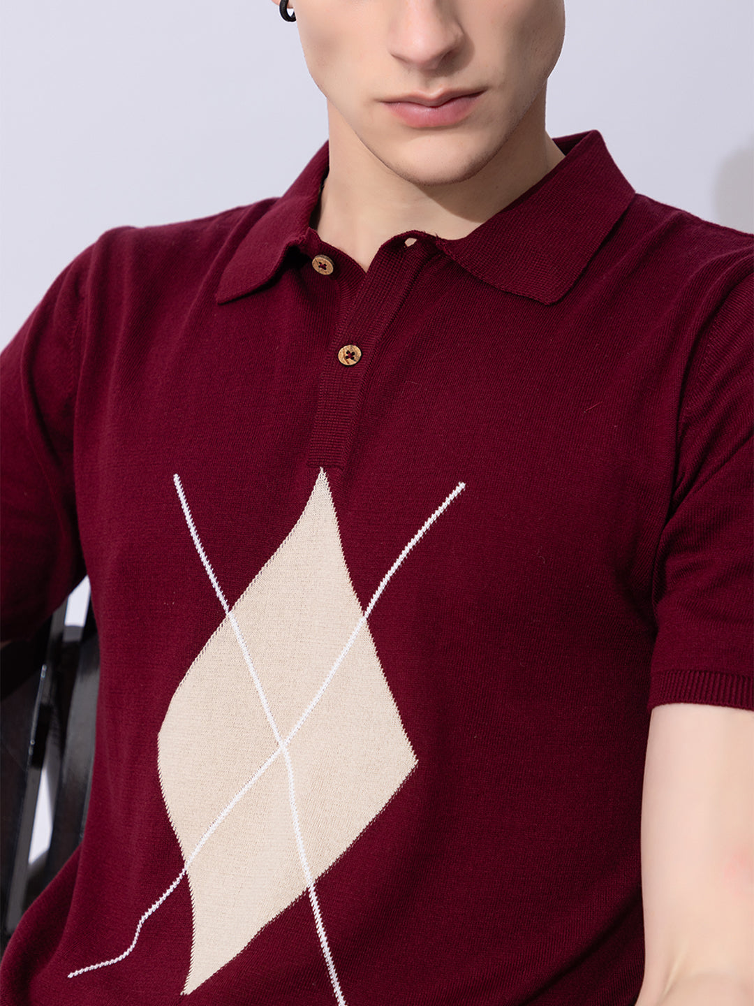 603 Argyle Knit Polo I Wine