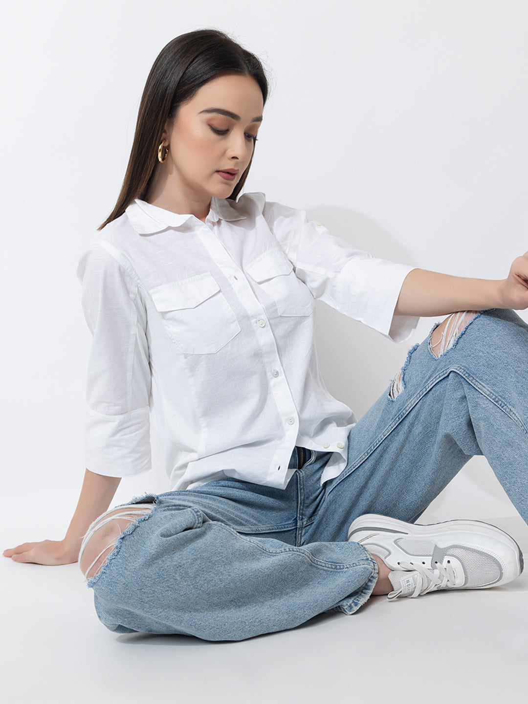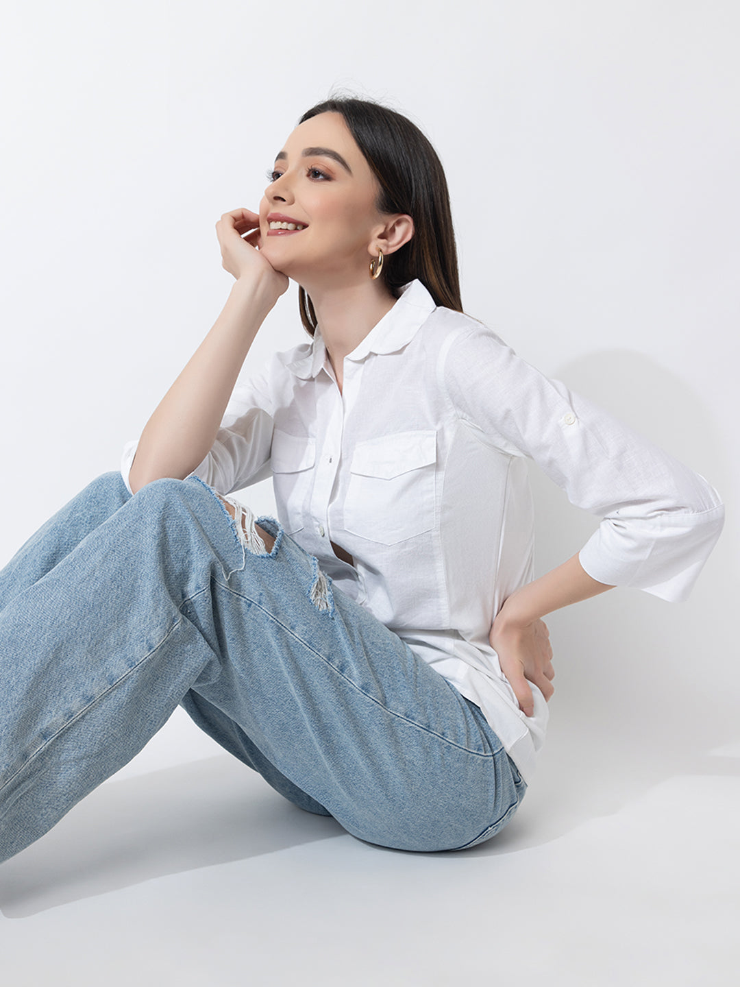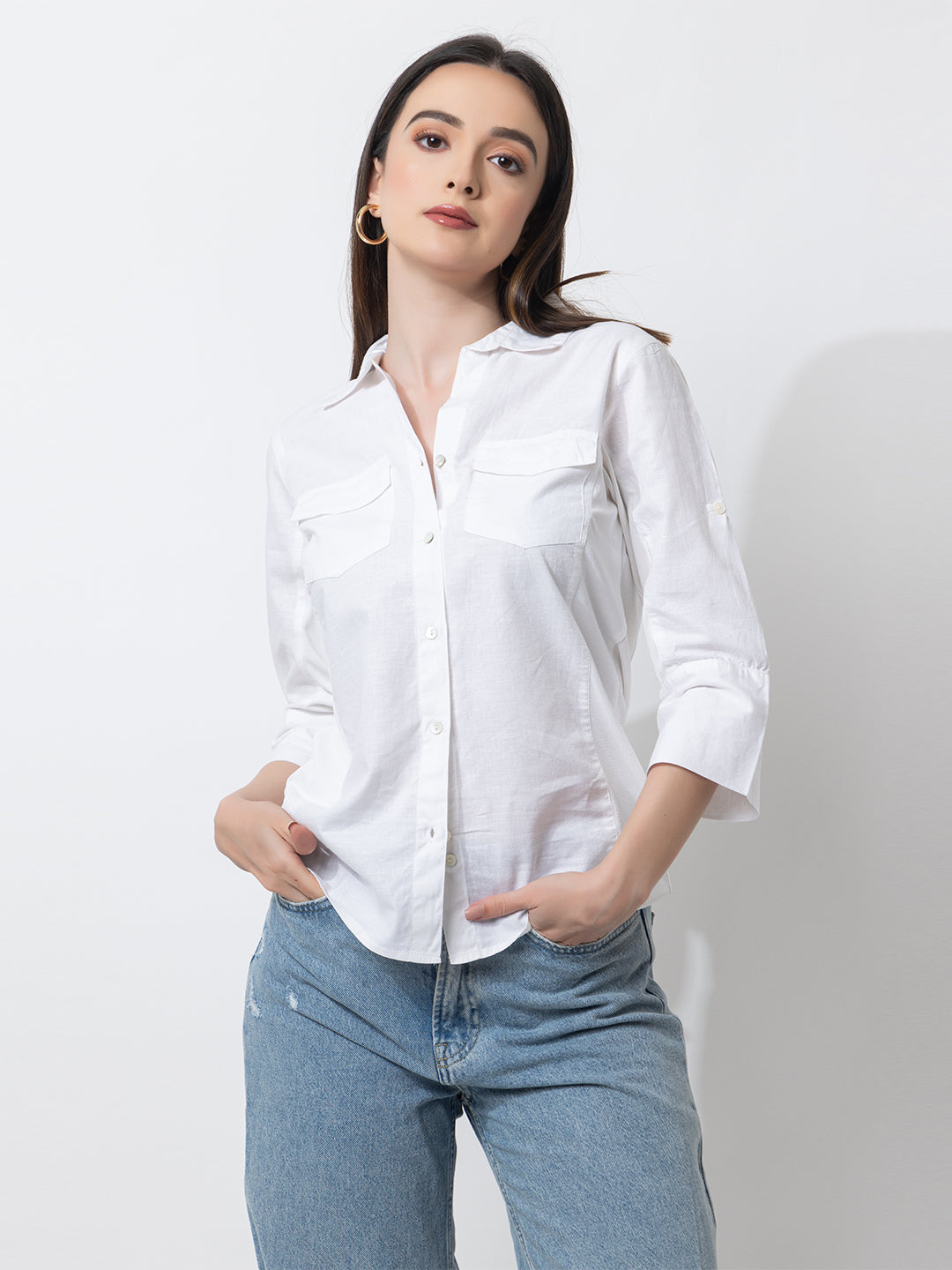 702 Women's Linen Smart Formal Shirt I Quarter Sleeves